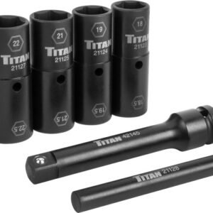 TITAN TOOLS Tit-21126 6-Pc 1/2" Drive Half-Size Thin Walled Impact Grade Flip Socket Set For Damaged Lug Nut Caps, 18-22Mm & 18.5-22.5Mm
