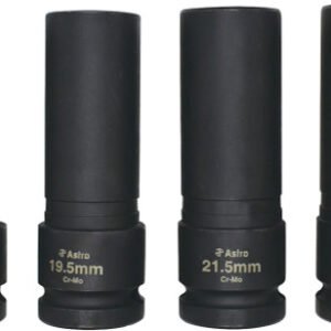 ASTRO PNEUMATICS Ast-78204 4-Pc 1/2" Drive Thin Wall Lug Nut Impact Socket Set, 17.5Mm, 19.5Mm, 11.5Mm, 22.5Mm