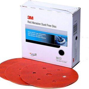 3M 01142 Red Abrasive Hookit Disc, Dust Free, 6", P220 Grit, 50 Per Box