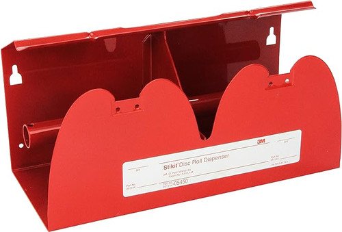 3M™ Stikit™ Disc Roll Dispenser is a sturdy metal dispenser that holds 5 inch (12.7 cm) or 6 inch (15.24 cm) 3M™ Stikit™ Disc Rolls.