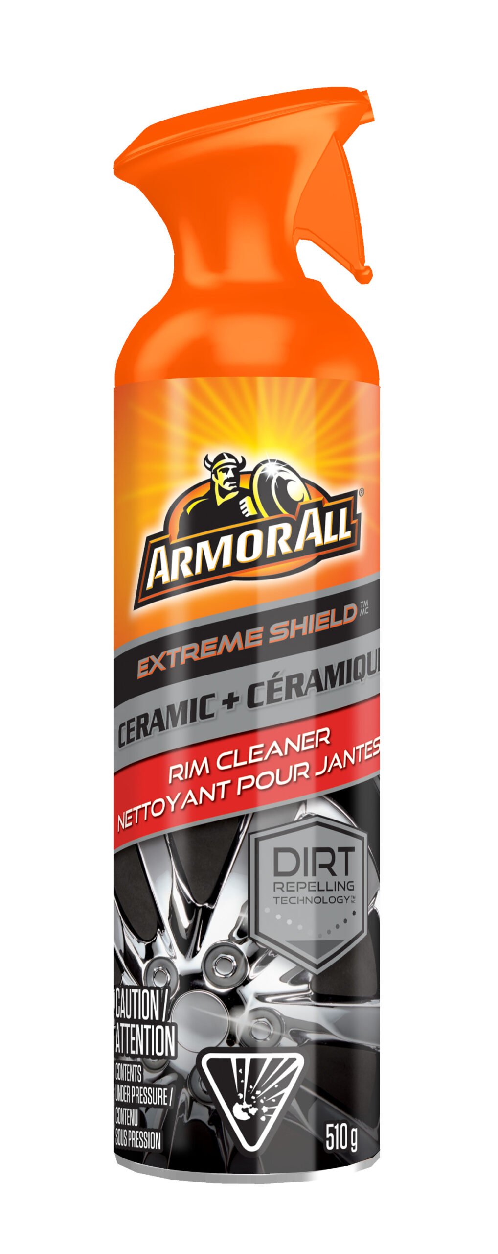 Armor All Extreme Shield + Ceramic Wheel Cleaner keeps your wheels clean, longer. Hydrophobic Extreme Shield and ceramic technology team up in this car protectant cleaning spray to create an invisible protective barrier that helps repel and prevent dirt and road grime from sticking to your wheels. Safe for use on all factory and aftermarket coated wheels, this spray cleaner comes as an easy-to-use aerosol with a multi-directional sprayer. Apply evenly to cool wheel surfaces, let sit for a few minutes, scrub and rinse. Spray on a final coat of car care spray to set the ceramic hydrophobic technology and rinse.