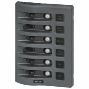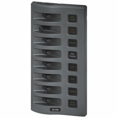 BS4308 WeatherDeck 12V DC Waterproof Switch Panel with Fuses – Gray 8 Positions