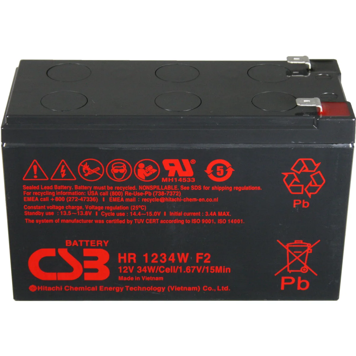 | Capacity | 34W @ 15 minute-rate to 1.67V per cell @ 25°C (77°F) |