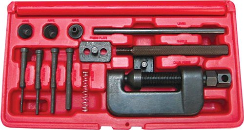 - Kit includes 3 anvils, 3 pins, riveter, spring, press plate, lever, handle and chain press