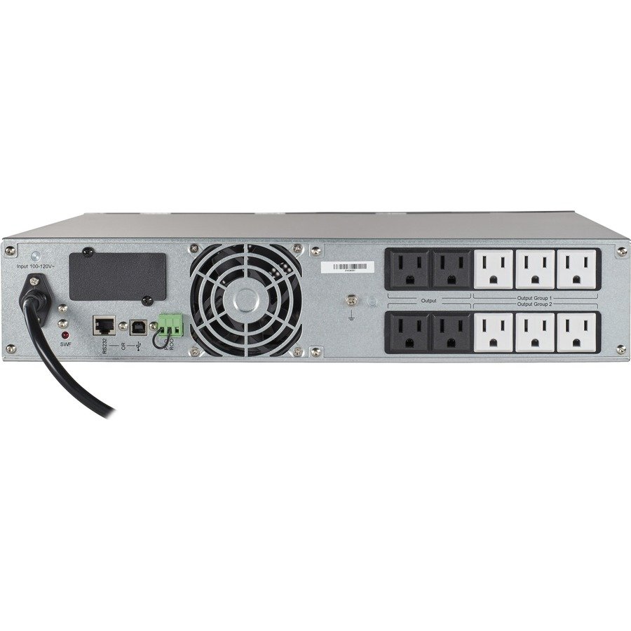 Ten managed 5-15R outlets provide connected equipment with pure sine wave AC output and allow you to monitor power consumption down to the outlet group level. Six outlets are grouped into two load banks that let you shed non-critical loads to extend runtime for critical loads.LCD Interface Keeps You Informed at a Glance