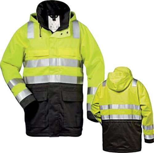 CATU CTU-AFG-PARKA-XL High-Viz Multi-Risk Parka With Hood For Protection Against Electric Arc, Central Zip With Flap, Adjust. Belt, 2 Chest & 2 Hip Pockets, Size Xl