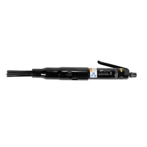 This inline needle scaler is used for a variety of medium duty surface cleaning work. Specifically, it removes dirt, rust, mill scale, weld slag, and paint in recesses and tight spaces. This unit comes with 19 needles that are loosely bundled rods that move independently. This allows them to follow the curves and contours of each work area. JB Tools is your No. 1 source for Ingersoll Rand air tools including this pneumatic scaler.