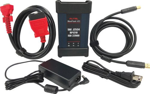 - The MaxiFlash VCI Kit, compatible with the MaxiSYS MS909 advanced diagnostic tablet, includes a bluetooth-enabled vehicle communication interface (VCI), a J2534-compliant pass-thru programming device. This VCI Kit also includes an Autel Main Cable V2.0, USB 2.0 cable, and AC/DC adapter. The MaxiFlash VCI supports CAN FD, 4 CAN Channels, D-PDU, IS 022900-1 and ISO 22900-2 protocols and is RP1210 compliant. The MaxiFlash VCI can be use with Windows computer with applicable OE subscription for vehicle module programming and when connected to the MaxiSYS MS909 tablet for compatible BMW and Mercedes vehicle module programming. Includes one-year Warranty.