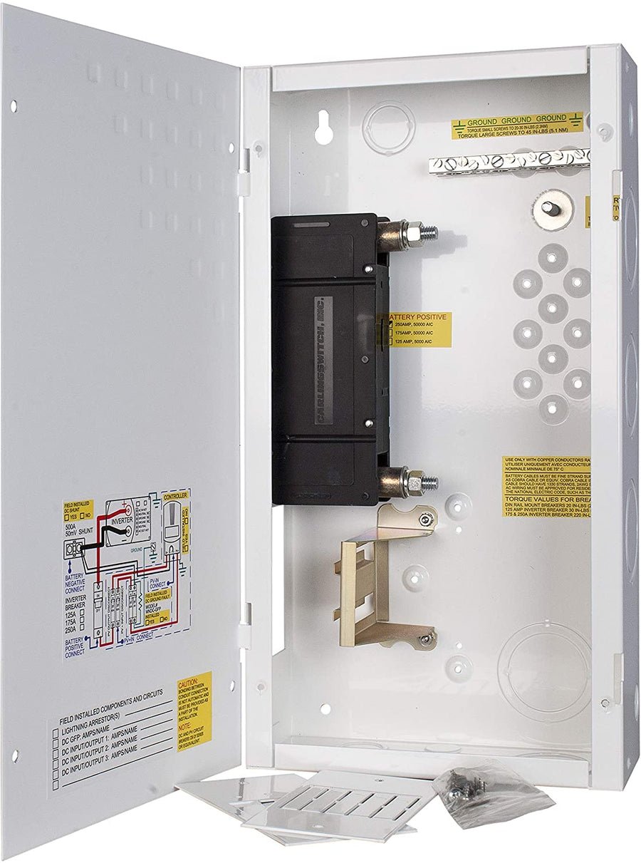 - Slots for 5 dinrail breakers or 3 panel mount breakers