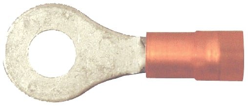 | Features | 3 part construction contains: inner lug, additional copper sleeve for added strength, crimpability and seamless outer nylon cover, Designed for heavy-duty applications to resist vibration and moisture, Serrated barrel for greater wire retention/ pullout strength, Tin plated annealed copper for improved corrosion resistance, max conductivity and crimp strength |