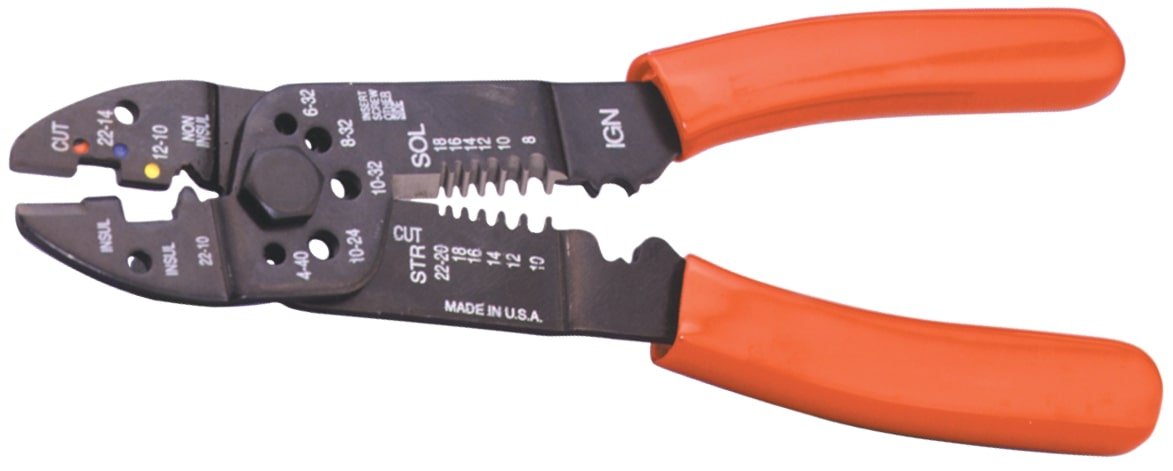 | Features | Crimps insulated and noninsulated connectors, Cuts 4-40, 6-32, 8-32, 10-24 and 10-32 bolts, Cuts and strips copper wire 22-10 GA stranded or 18-8 AWG solid conductor |