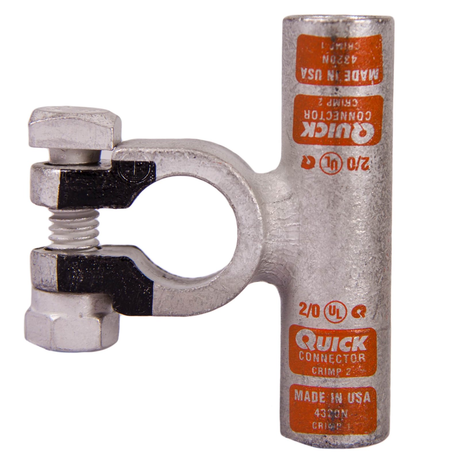| Features | 25 times better than SAE conductivity standard, J1811, Made of cast copper alloy, tin plated for added conductivity & corrosion resistance, Permanent, indelible, readable gauge, and polarity stamped on clamp, Precise dimensions to fit battery posts for maximum contact Made in USA, Quick Connectors are listed by UL® (UL® STD 486A) & CUL , when applied with Quick Cable Quick Crimp tools 4255, 4255M, 4255R & 4255MR (standard and ratchet versions) |
