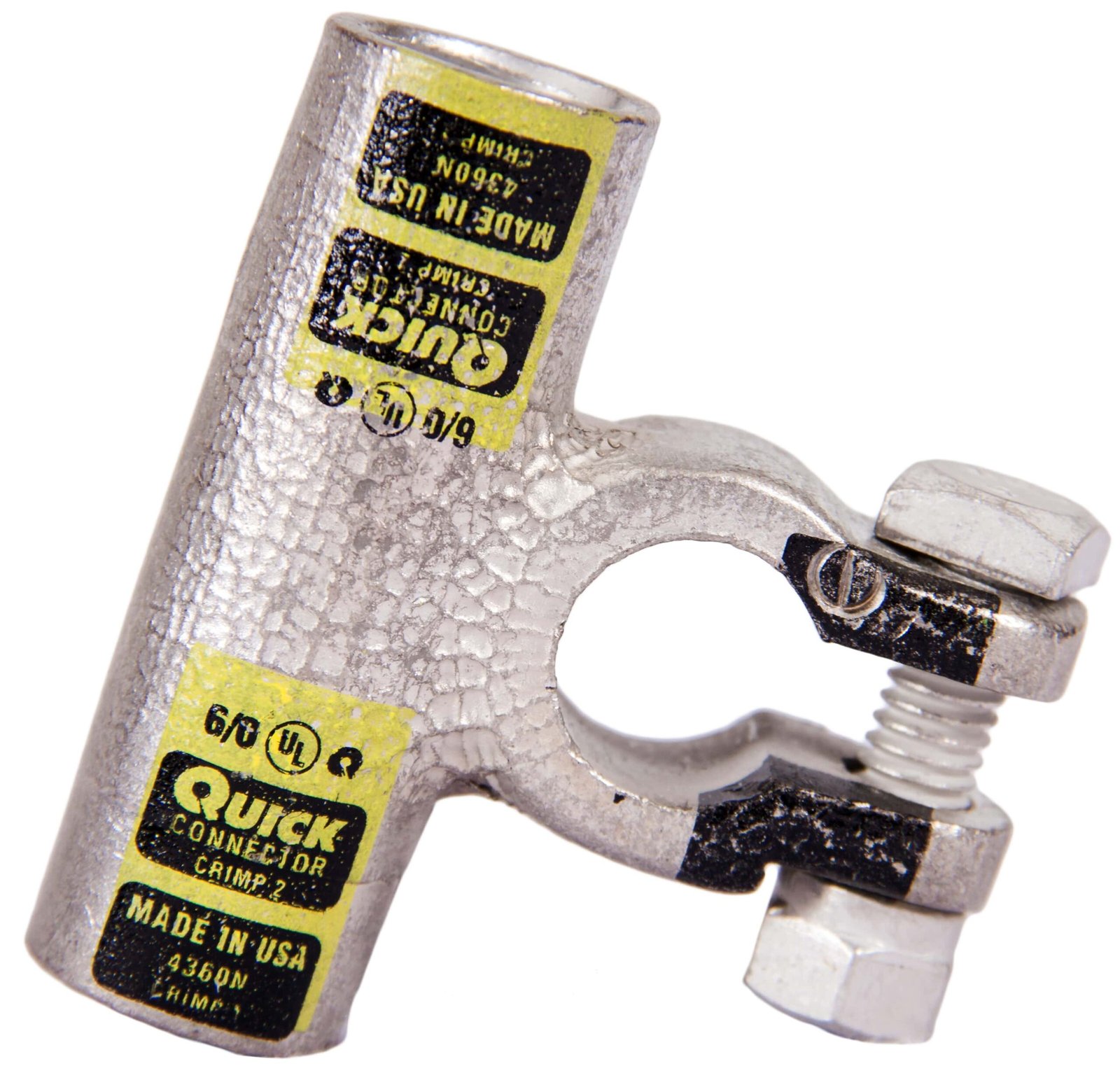 25 times better than SAE conductivity standard, J1811, Made of cast copper alloy, tin plated for added conductivity & corrosion resistance, Permanent, indelible, readable gauge, and polarity stamped on clamp, Precise dimensions to fit battery posts for maximum contact Made in USA, Quick Connectors are listed by UL® (UL® STD 486A) & CUL , when applied with Quick Cable Quick Crimp tools 4255, 4255M, 4255R & 4255MR (standard and ratchet versions)