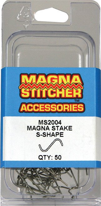 • S-Shaped Magna-Stakes for repair of flat surfaces. Clamshell of 50 replacement stakes for Motor Guard Magna-Stitcher plastic repair tools.