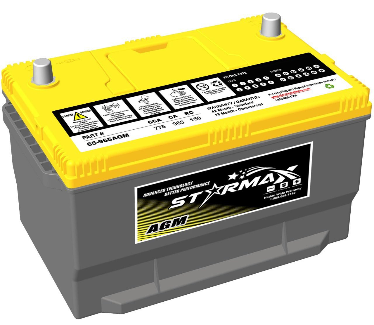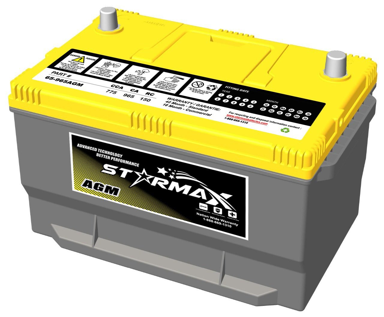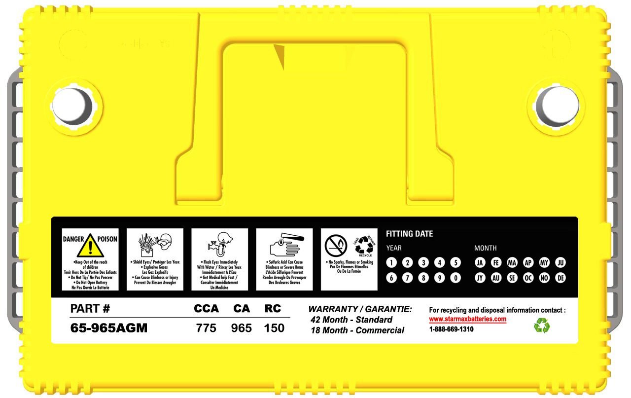 Starmax Premium Group 65 – AGM 965CA, 775CCA, 150RC Automotive Starting Battery – 12Volts
