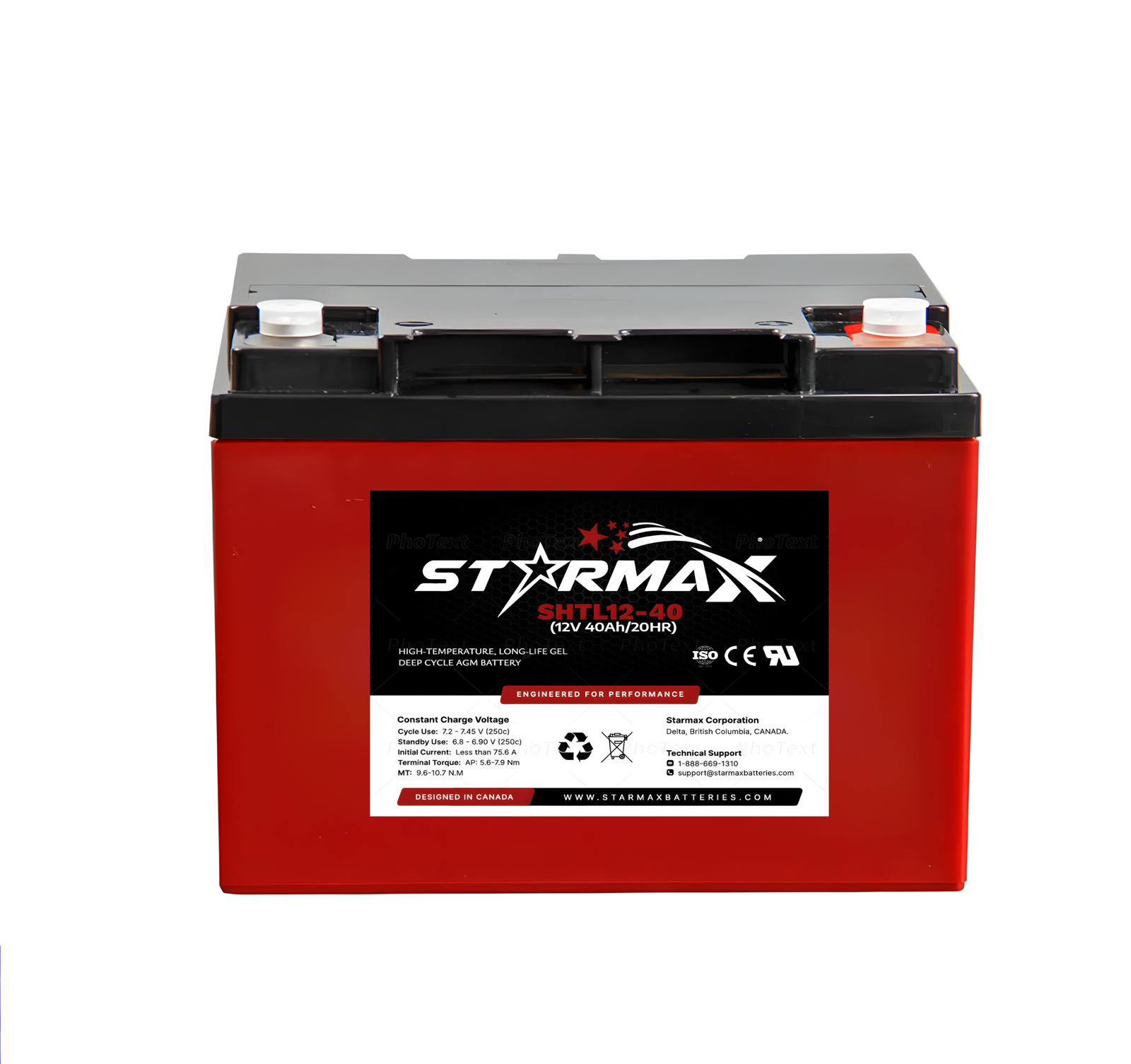 | Operating temperature range | CSPower HTL high-temp GEL units: rated to operate approx. -40°C to +60°C (HTL Pro 12V40Ah page). If you need exact Starmax SHTL12-40 temperature specs, request Starmax’s model sheet/sales page (not all marketplaces publish high-temp ratings). :contentReference[oaicite:6]{index=6} |