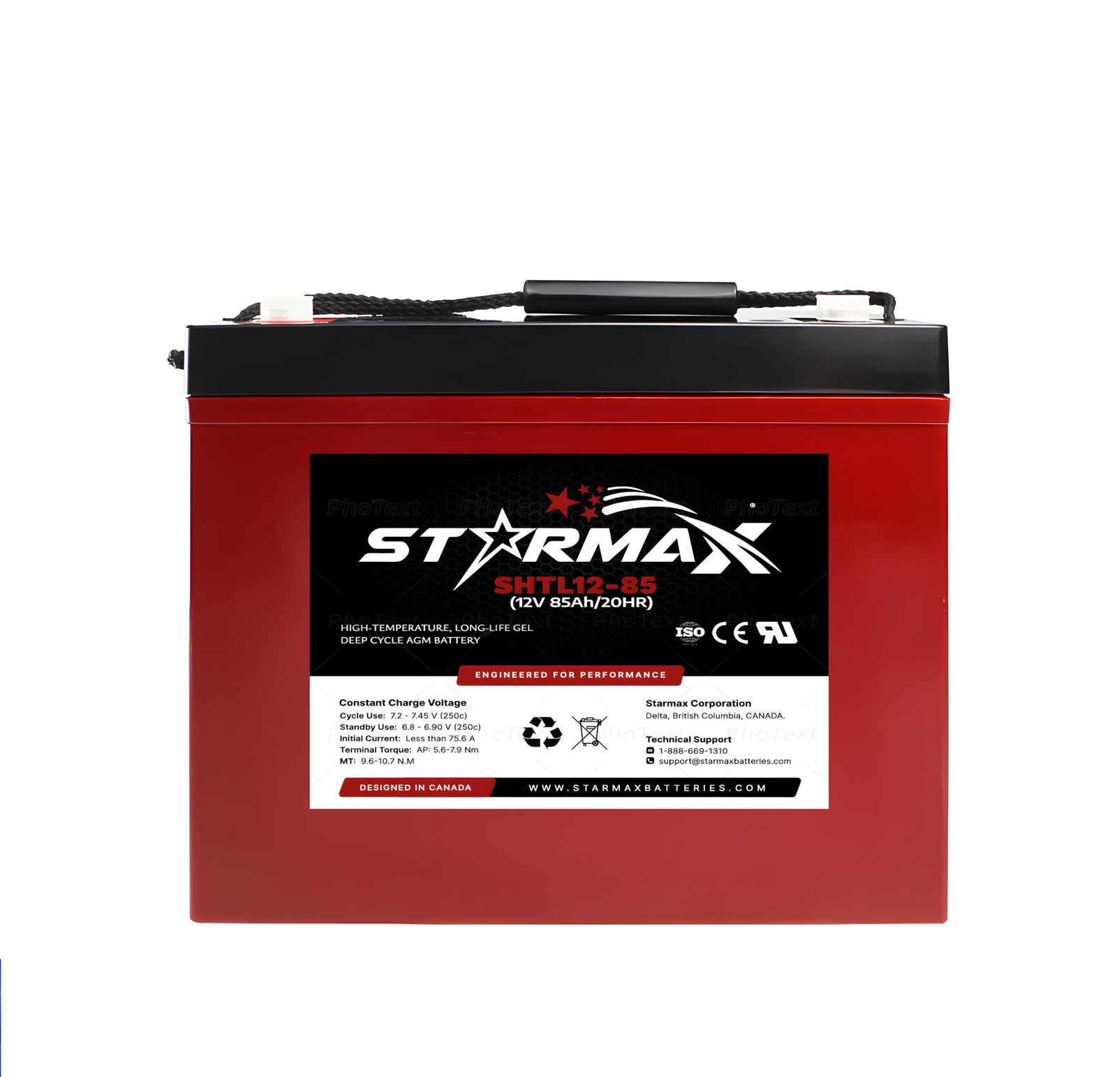 | Model | Starmax SHTL12‑85 (12V 85Ah High‑Temp Deep Cycle GEL/AGM) |