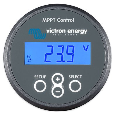 The MPPT Control lets you see the status as well as setup all BlueSolar MPPT Charge Controllers that have a VE.Direct communications port. The MPPT Control is mounted in the familiar BMV-700 series housing, maintaining a consistent and professional look to your panels and systems monitoring equipment.